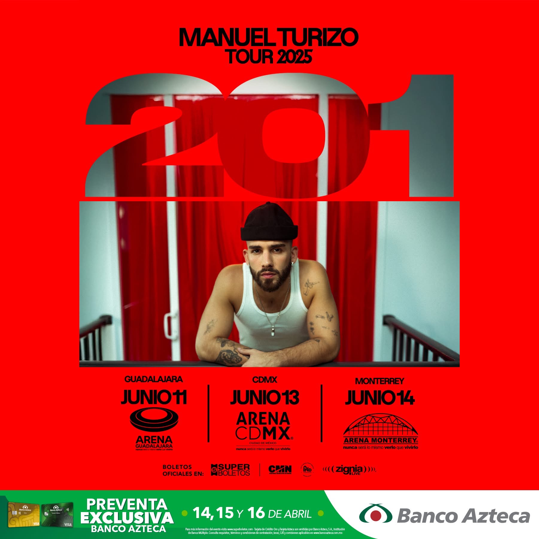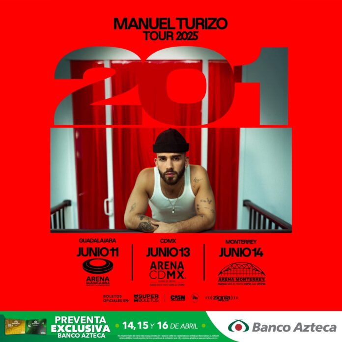 La estrella de la música en español MANUEL TURIZOanuncia su gira internacional “201 TOUR”, una ambiciosa serie de conciertos que lo llevará a recorrer los escenarios más importantes de Latinoamérica y Estados Unidos. La gira es presentada por CMN Events y su sello discográfico La Industria INC, quienes próximamente también anunciarán las fechas del Tour en el continente europeo.