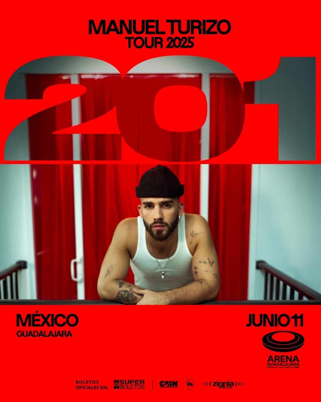 Tras consolidar su carrera con éxitos globales como “La Bachata”, “El Merengue” y su más reciente colaboración con Kapo, Manuel Turizo se prepara para una gira sin precedentes que conecta con su audiencia en más de 25 ciudades. Con una producción de alto nivel y una propuesta escénica renovada, “201 Tour” promete ser uno de los espectáculos más esperados de 2025.