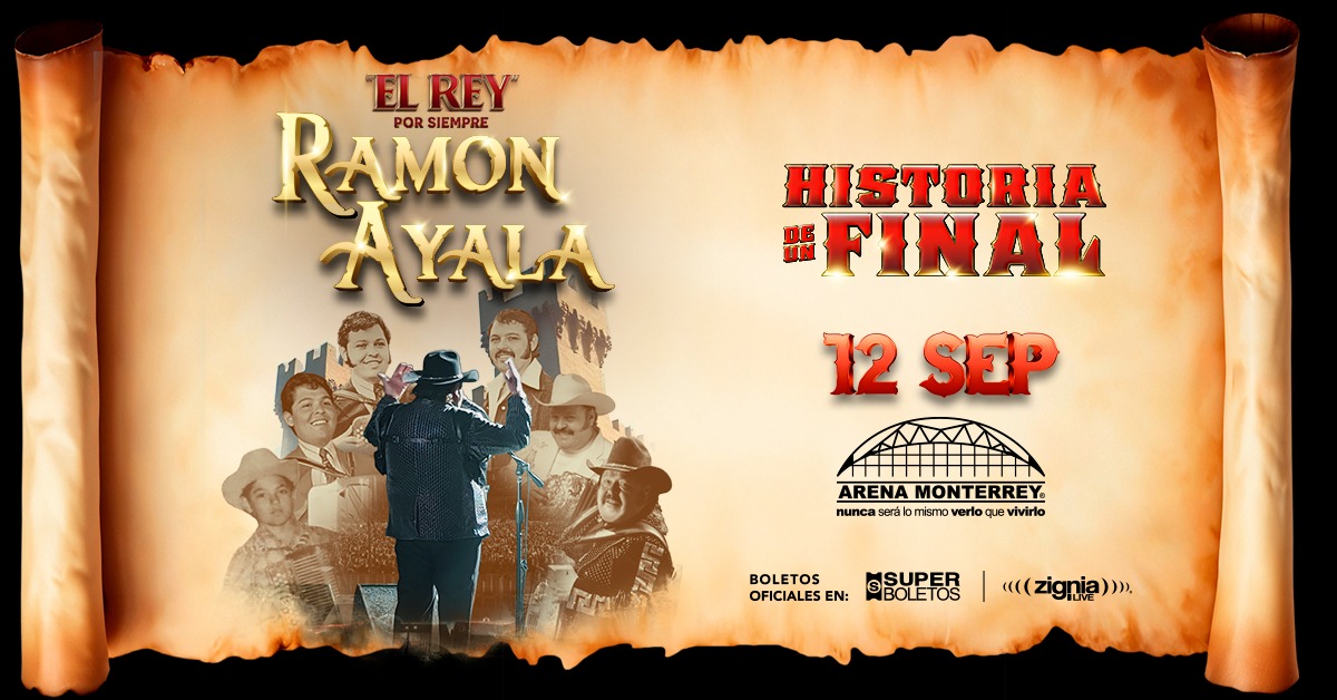 Originario de Monterrey, Nuevo León, RAMÓN AYALA trae tras de sí una trayectoria musical impecable que cerrará con su gira La historia de un final y que abarcará diversas ciudad de Estados Unidos, así como las ya mencionadas Arena Monterrey el 12 de septiembre y la Arena CDMX el 13 de septiembre de este año.