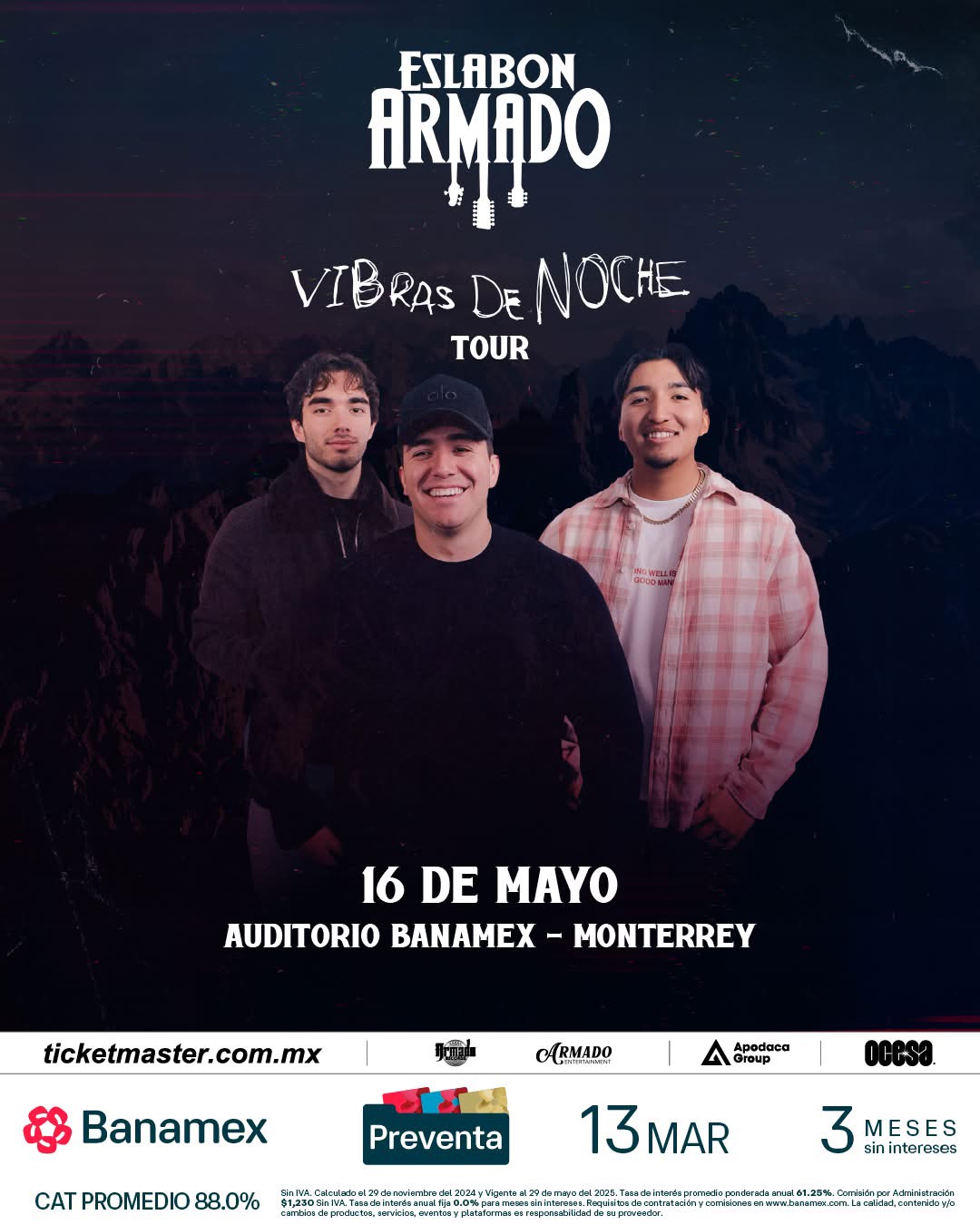 El fenómeno del regional mexicano contemporáneo, Eslabón Armado, llegará por primera vez a México, y lo hará pisando fuerte: su debut en tierras mexicanas será el próximo 16 de mayo en el Auditorio Banamex de Monterrey, como parte de su gira internacional “Vibras de Noche Tour“.