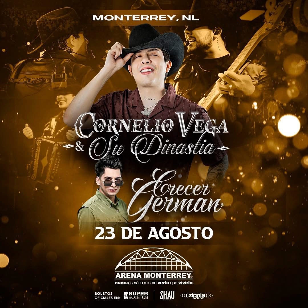 Monterrey, NL – Prepárense para una noche de emociones intensas y ritmos inolvidables, porque Cornelio Vega y su Dinastía tomarán la Arena Monterrey el sábado 23 de agosto a las 21:00 horas. Se trata de uno de los eventos más esperados del género regional mexicano en la ciudad.