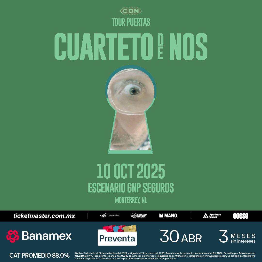 El Cuarteto de Nos regresa a Monterrey este próximo 10 de octubre de 2025, y lo hace en su mejor momento. La cita será en el Escenario GNP Seguros, donde la banda uruguaya desplegará toda su ironía, potencia y lírica aguda en un show que promete quedarse grabado en la memoria de todos los asistentes.