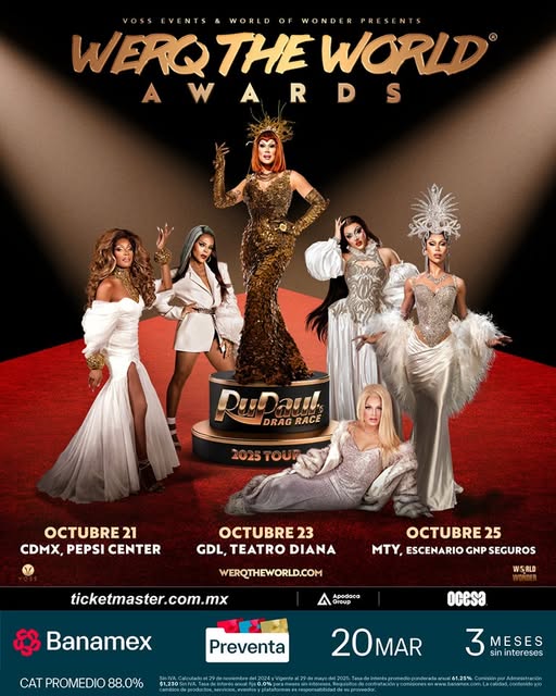 ¡Saca tu mejor outfit y prepárate para deslumbrar! Este próximo octubre, la pasarela más icónica del mundo drag aterriza en México con el espectacular Werq The World Tour 2025, el show oficial de RuPaul’s Drag Race que ha conquistado escenarios en todo el mundo y que promete dejar el drama sobre el escenario y el glitter en el aire.