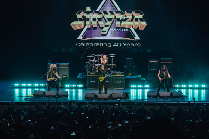 El logotipo de Stryper en amarillo luminoso en medio de la oscuridad. Así comenzó la noche del 11 de julio en el Escenario GNP Seguros de Monterrey, cuando Stryper—los inconfundibles guerreros del metal cristiano—subieron al escenario puntuales a las 9:30 de la noche, vestidos, como dicta la tradición, de negro y amarillo, desatando los primeros gritos de un público que llevaba 3 años esperando verlos de nuevo (o por primera vez).
