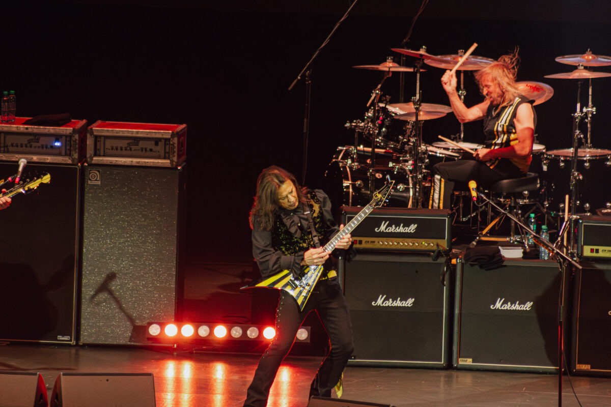 Sweet, además de cantar con una fuerza y donde el tiempo ya hace mella, tuvo que encargarse también de muchos de los solos de guitarra, en ausencia del legendario Oz Fox, quien se encuentra en recuperación. Su lugar fue ocupado por el experimentado Howie Simon, quien cumplió con creces. Robert Sweet, como es su estilo, tocó su batería de perfil, como si dirigiera su mirada a cada alma en el recinto, y el bajista Perry Richardson se mantuvo firme, sosteniendo con precisión y potencia las bases rítmicas de la noche.