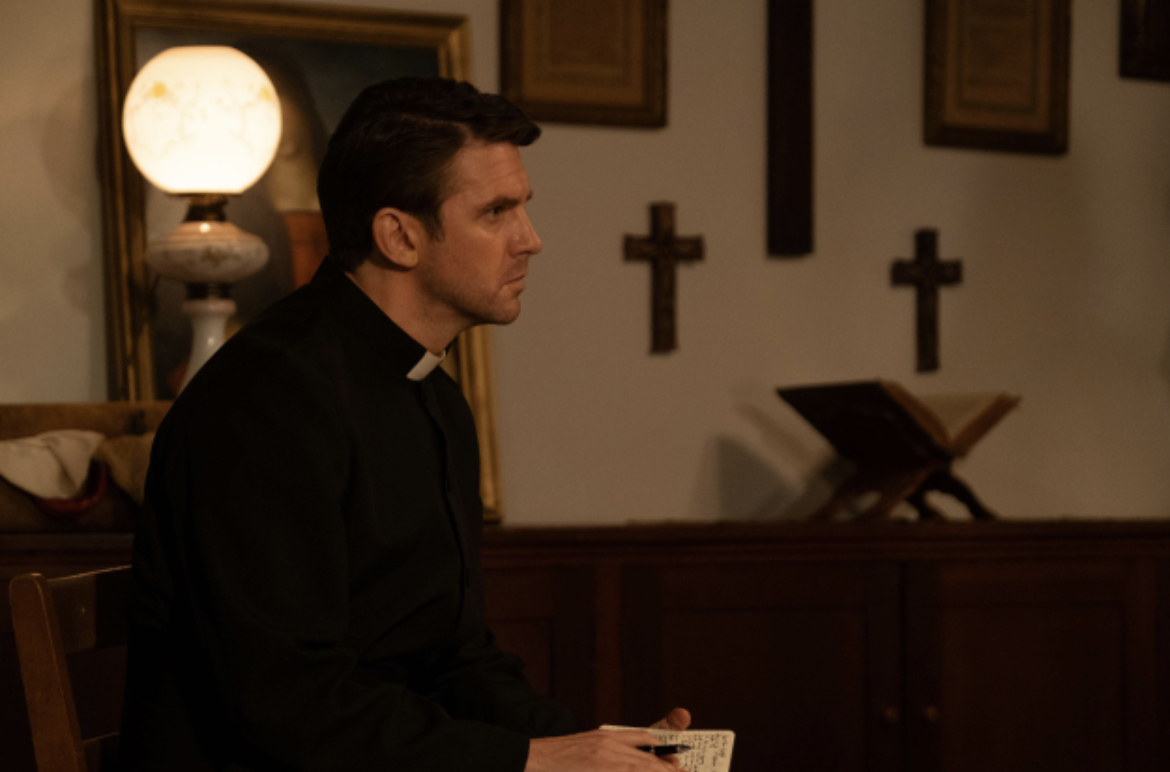 Dan Stevens interpreta al joven padre Joseph Steiger, un sacerdote en crisis cuya fe será puesta a prueba en cada escena.