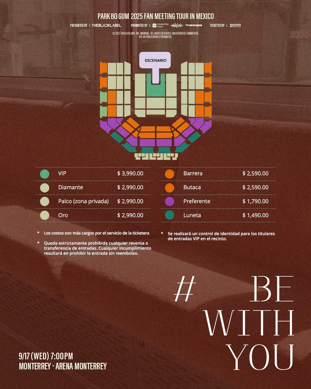 Los boletos ya están disponibles a través de Superboletos y en taquillas de la Arena Monterrey, con precios que van desde: