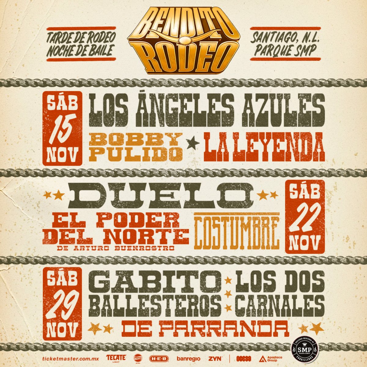 La cita será en el Parque SMP, en Santiago, Nuevo León, los sábados 15, 22 y 29 de noviembre de 2025 desde las 4:00 pm. Prepárate para tres fines de semana seguidos de pura fiesta norteña.