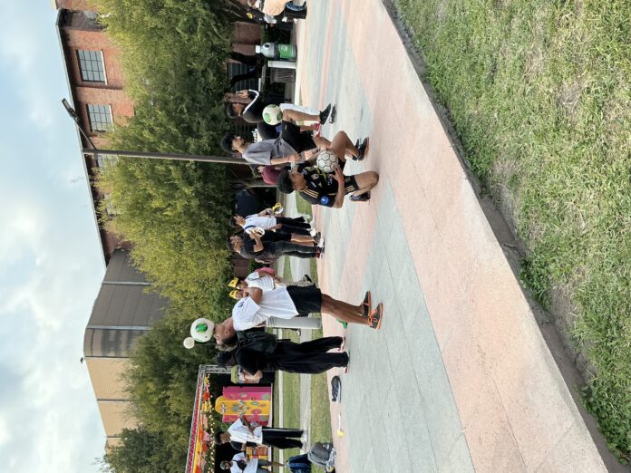 Desde que se abrieron las puertas en la explanada Sopladores del Parque Fundidora, el ambiente fue puro festejo. Camisetas verdes por todos lados, balones rebotando, retas improvisadas y competencias de dominadas marcaron el ritmo del día. Hubo incluso un concurso de comer chiles chiltepín, que sacó lágrimas y carcajadas —sí, a cargo de quien todos conocemos por su legendaria frase: “¡Y que chille!” 🔥