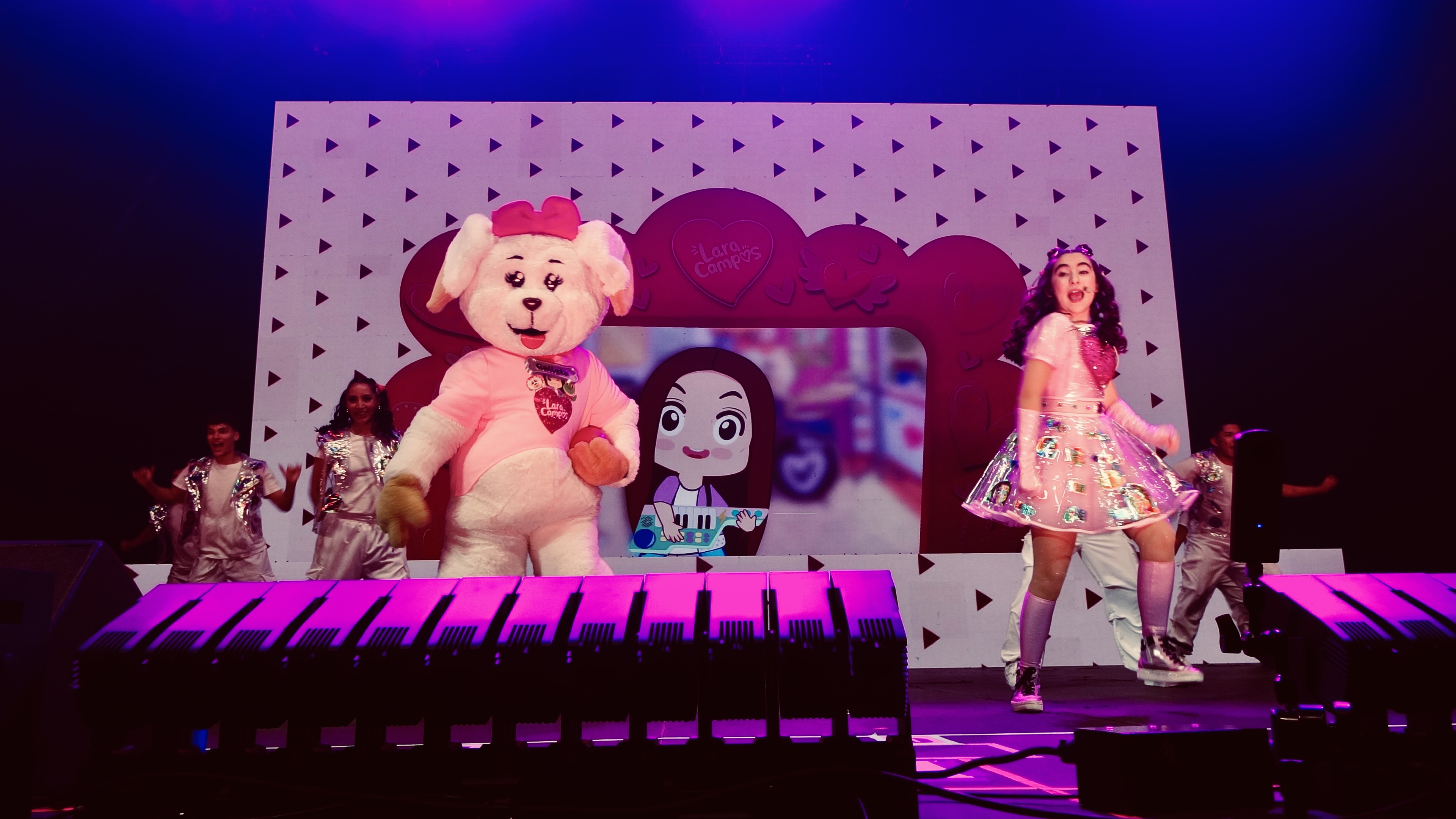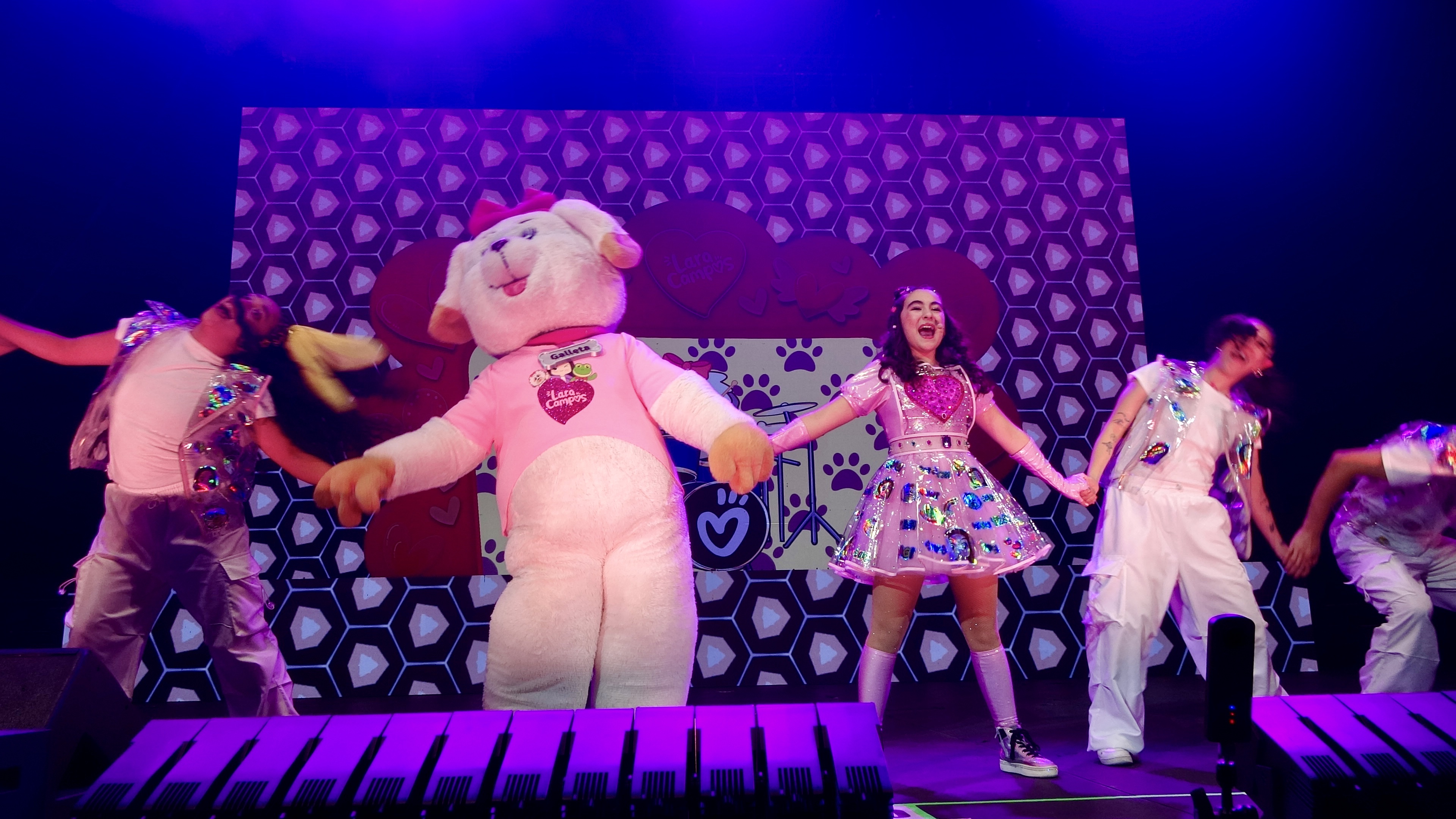 En el escenario Lara agradeció el cariño de su público y se mostró emocionada por el crecimiento de su comunidad: “Gracias por ese mágico amor”, dijo en un momento íntimo del concierto, frase con la que remitió a su vínculo con los seguidores de sus contenidos en YouTube y redes sociales. La artista estuvo acompañada por un cuerpo de bailarines que multiplicó la energía del show y por personajes entrañables —Galleta y Rhenné— que interactuaron con los pequeños durante varias canciones.