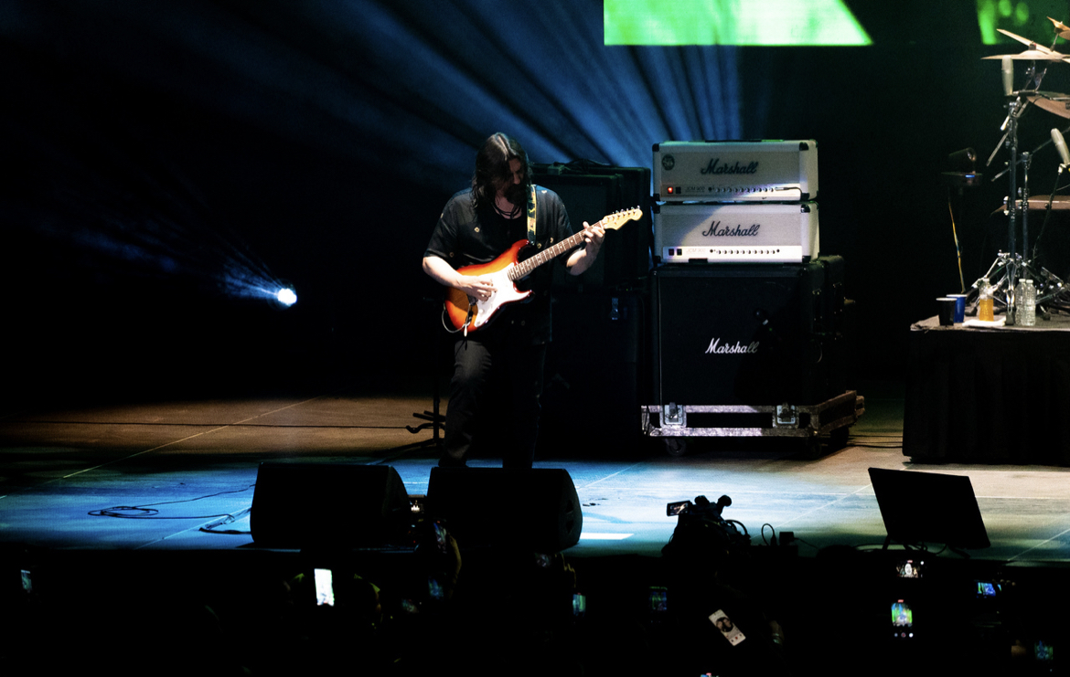 El flujo del setlist mantuvo su equilibrio habitual entre los clásicos más intensos y los temas de atmósfera más densa. Canciones como “Miedo”, “Los dioses ocultos”, “Nubes” y “Viento” construyeron ese espacio casi ritual que caracteriza a los conciertos del grupo, en el que el público no solo canta: participa, se deja llevar y parece entrar en un mismo pulso. Cuando llegó el turno de “Afuera”, el auditorio entero se convirtió en un solo coro, un contraste poderoso entre la voz del público y la sobriedad de la banda sobre el escenario.