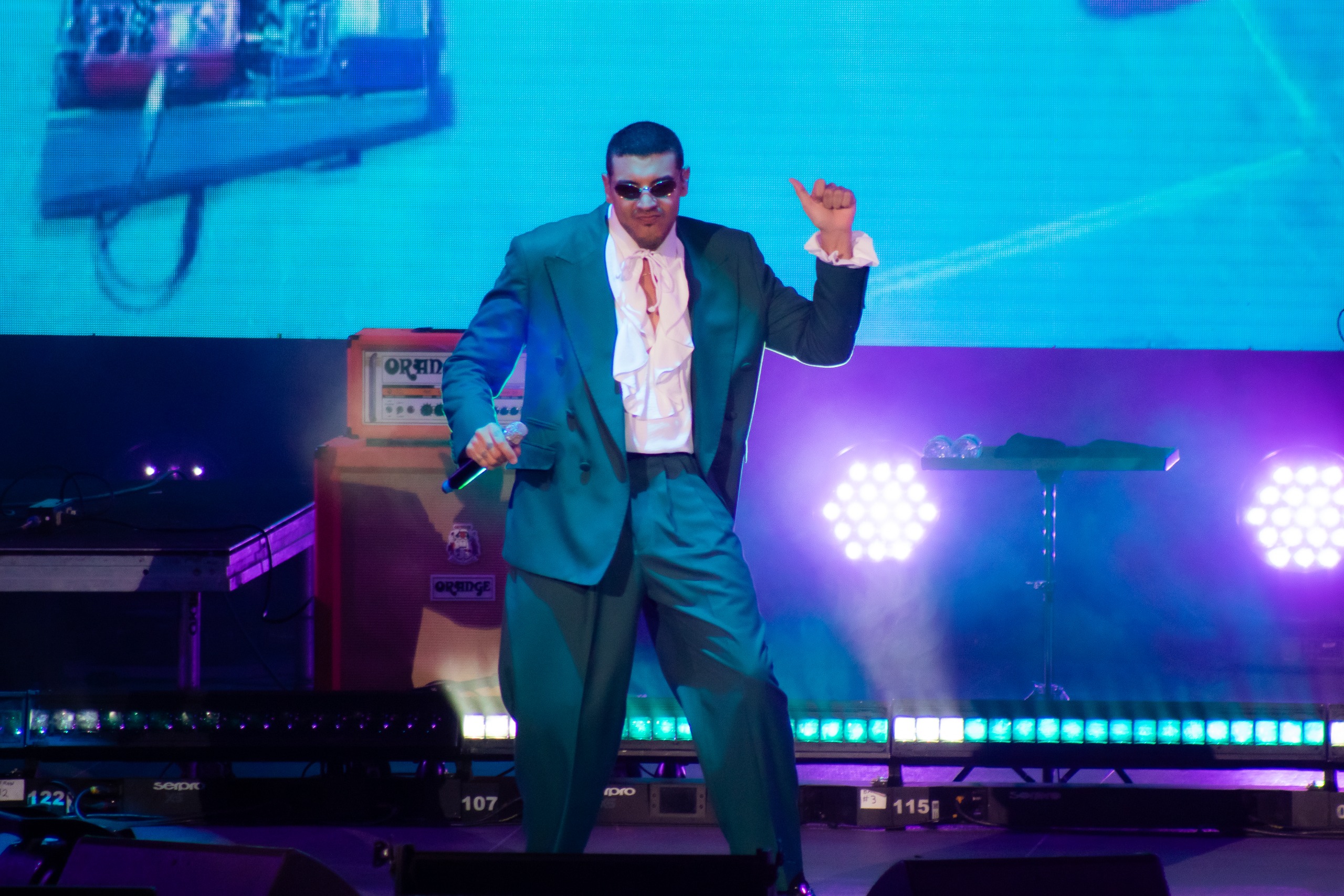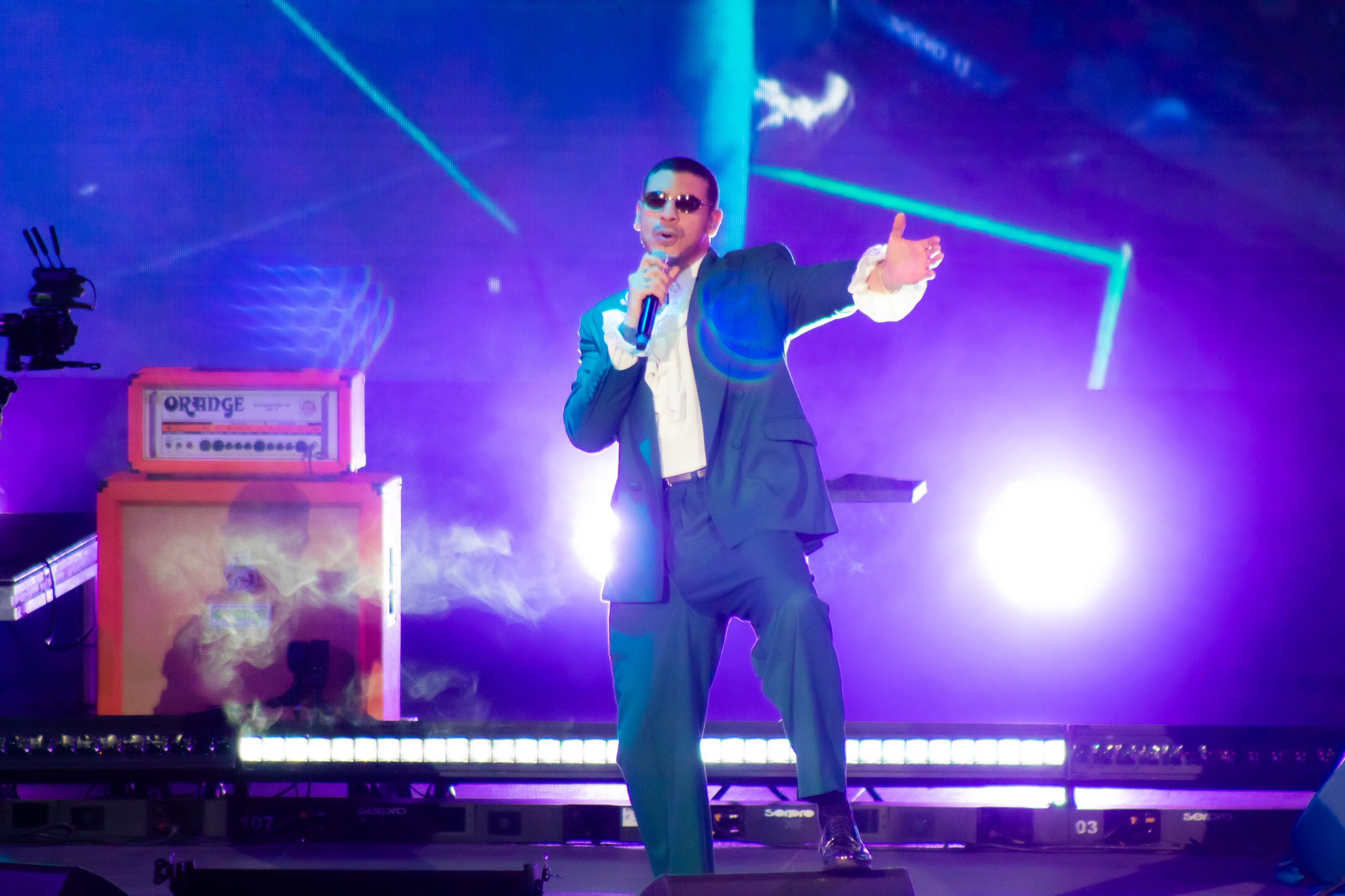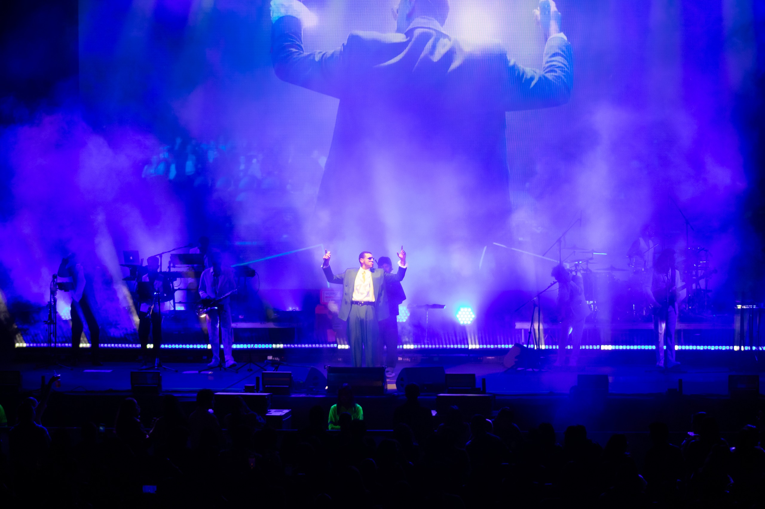 El cantautor colombiano abrió la presentación con un intro de corte atmosférico que generó expectación entre el público. Con su entrada al escenario, el recinto estalló en gritos y aplausos, marcando el inicio de un espectáculo que mantuvo la intensidad a lo largo de toda la noche.