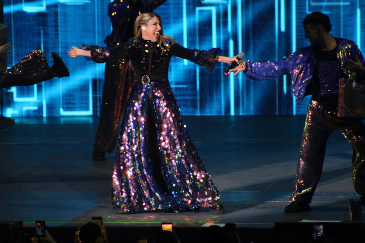 El viaje continuó con “Odio de Vos”, mientras los bailarines arropaban su voz y los seis músicos en escena la energía que recordó a los mejores momentos de la tira de Cris Morena.