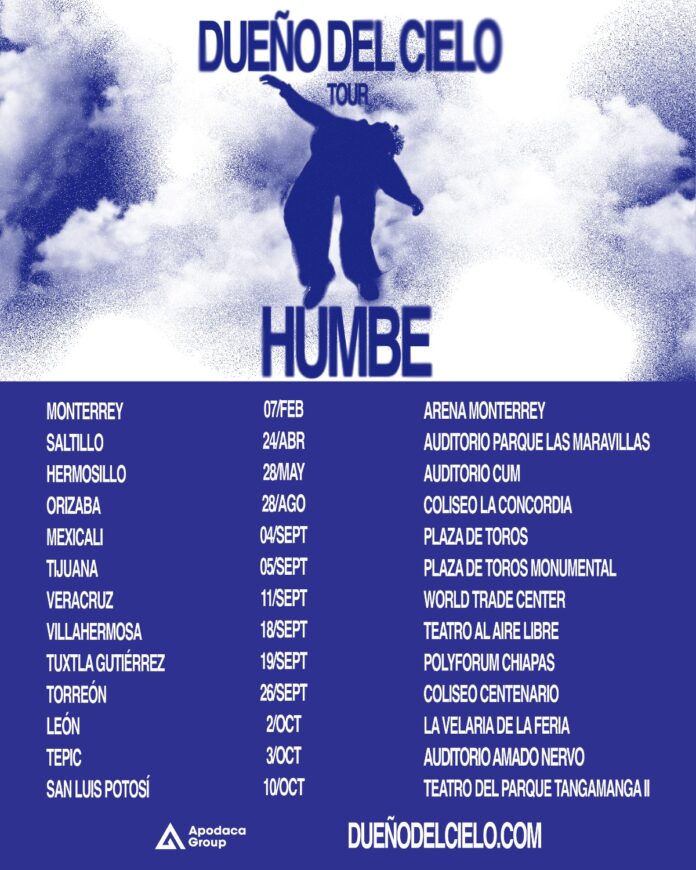 Una de las voces más frescas, auténticas y prometedoras del pop alternativo y la balada contemporánea, Humbe, está listo para llevar su carrera a nuevas alturas con el anuncio oficial de su próxima gira: “Dueño del Cielo Tour”. Este ambicioso recorrido por distintas ciudades de México se perfila como uno de los proyectos musicales más importantes de 2026.