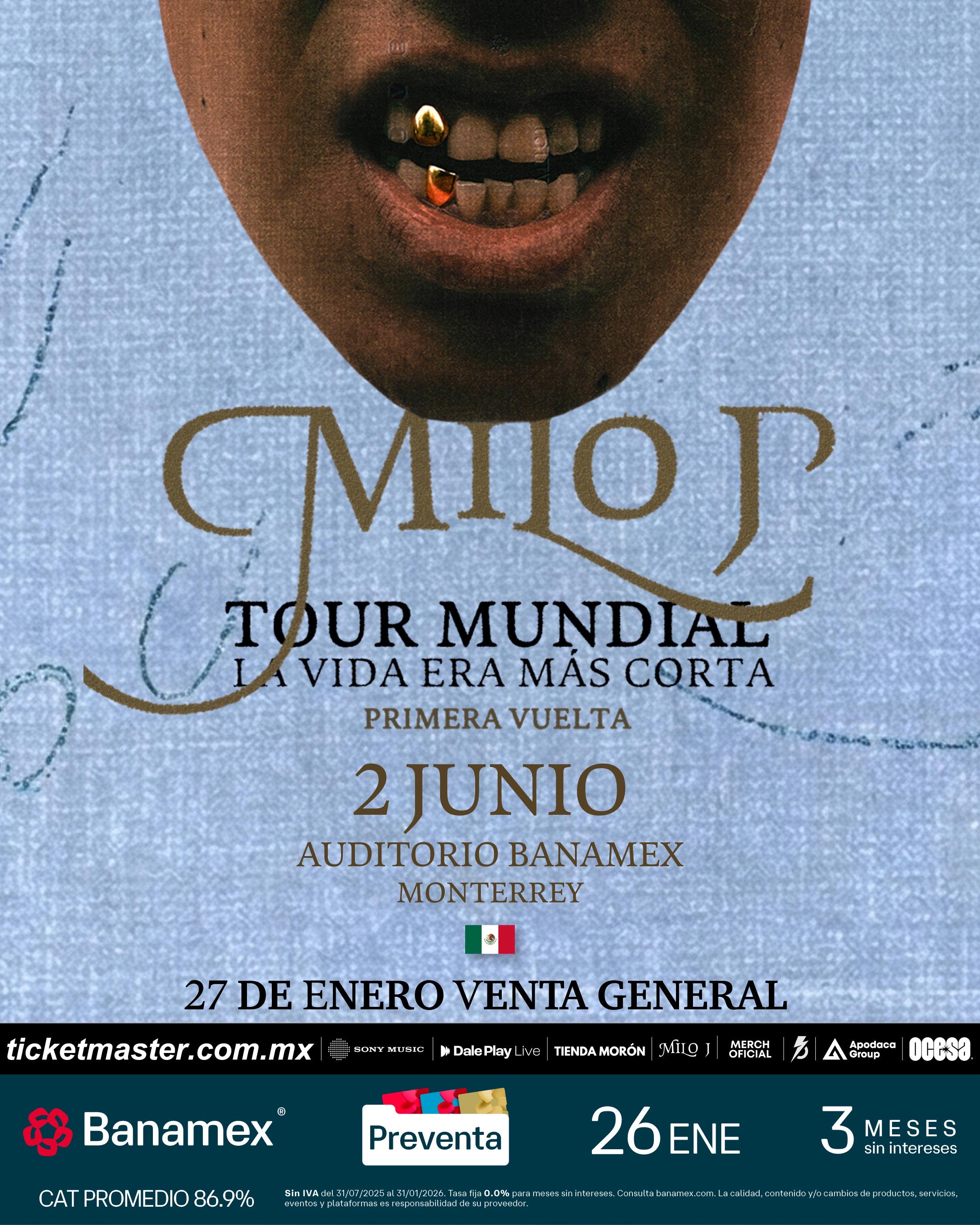Porque Milo J no solo canta: cuenta historias que parecen tuyas. Su llegada a Monterrey es una oportunidad para ver de cerca al artista que está marcando el pulso del rap argentino y latino en la actualidad.