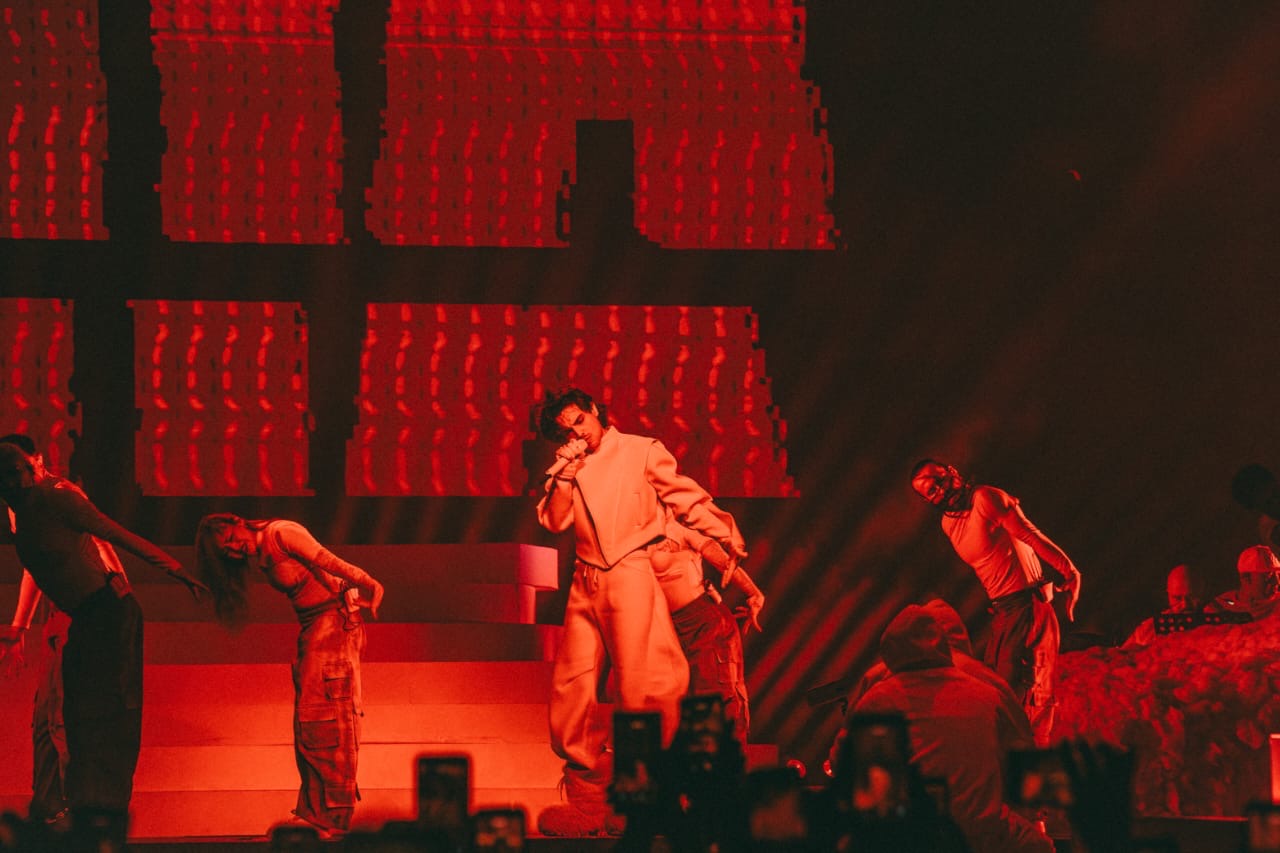 A las 9:09 en punto, tras un breve intro, el silencio se rompió con los gritos cuando apareció Humberto Rodríguez Terrazas, mejor conocido como Humbe, acompañado de bailarines y abriendo con “Astro”, provocando una explosión de euforia. Pero el fuego apenas comenzaba: con “El Poeta”, la coreografía elevó la temperatura del recinto y dejó claro que esta no sería una noche cualquiera.