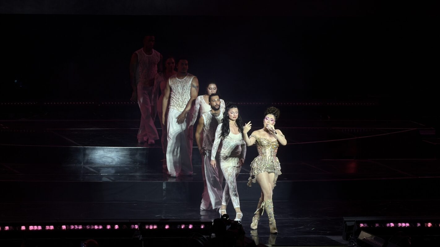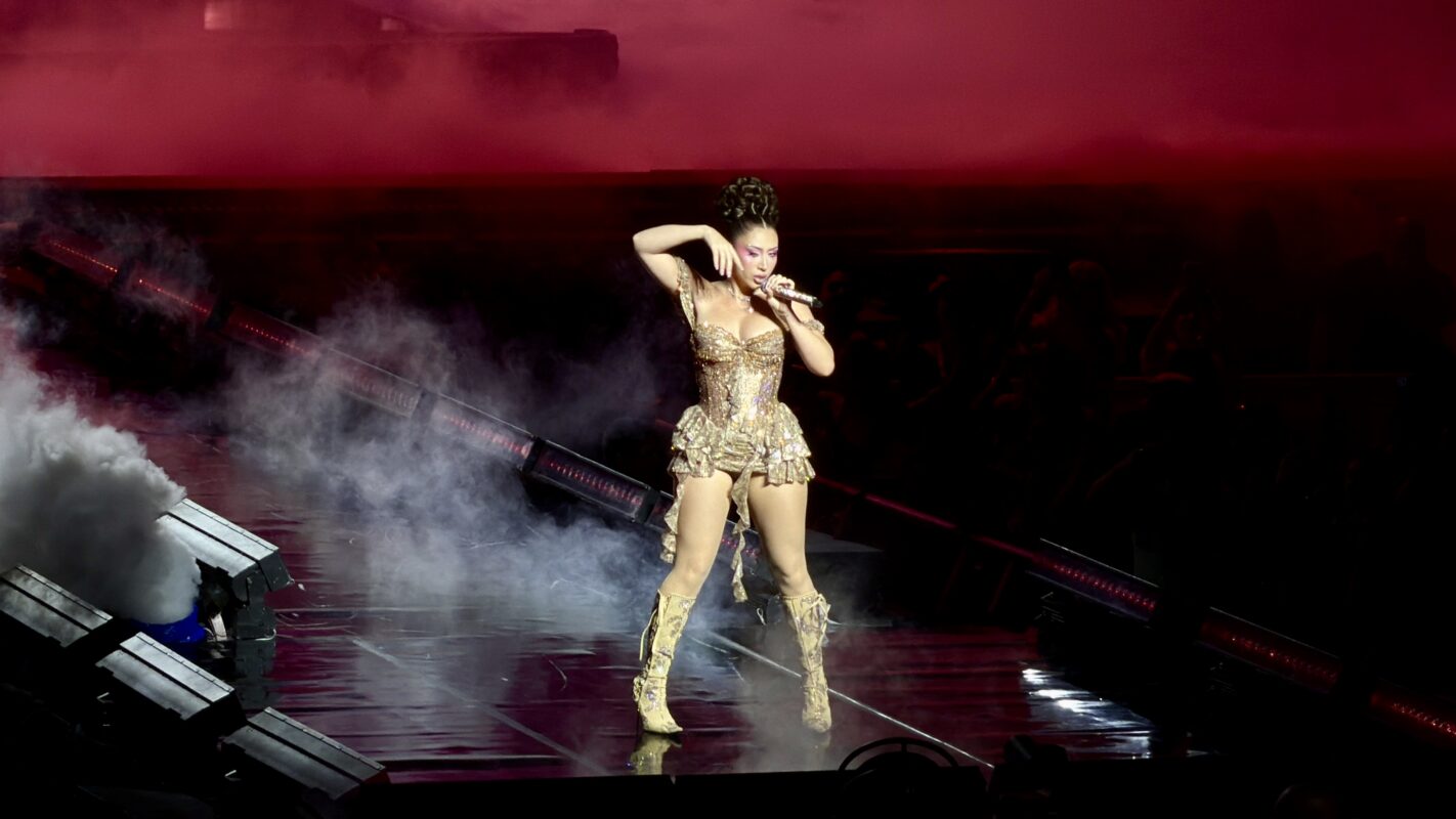Brillando como oro, con corset estructurado y diminuta falda, Kali salió decidida a marcar territorio en su primer show mexicano. Y Monterrey respondió como sabe: de pie y coreando.