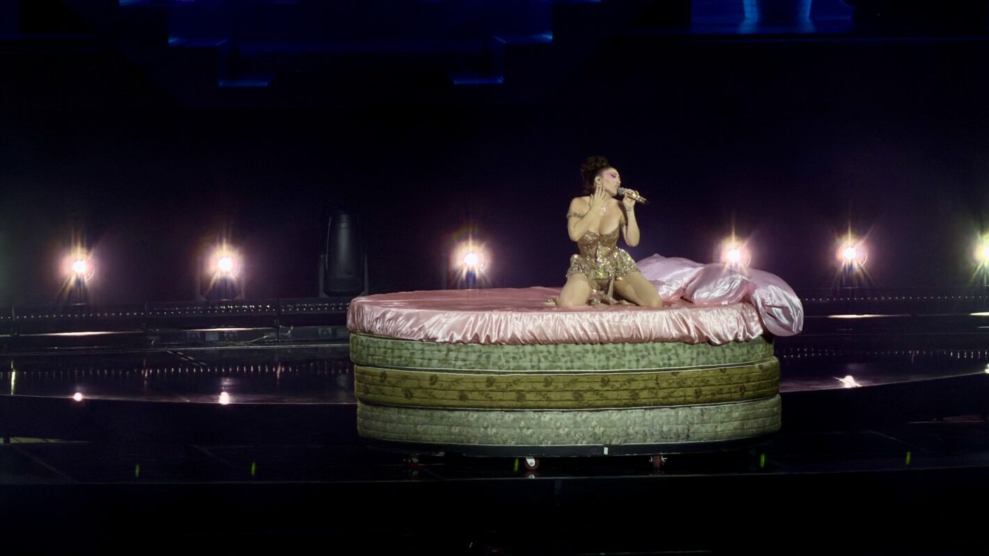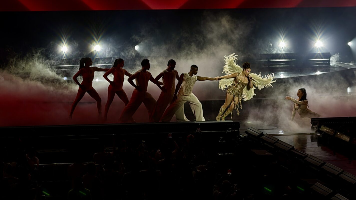A las 21:17 horas, la originaria de Alexandria, Virginia, apareció desde lo alto en un columpio mientras caía un inmenso telón de ondas. El primer acorde de “Muñekita” detonó la euforia colectiva. La conexión fue inmediata. Nadie estaba sentado.
