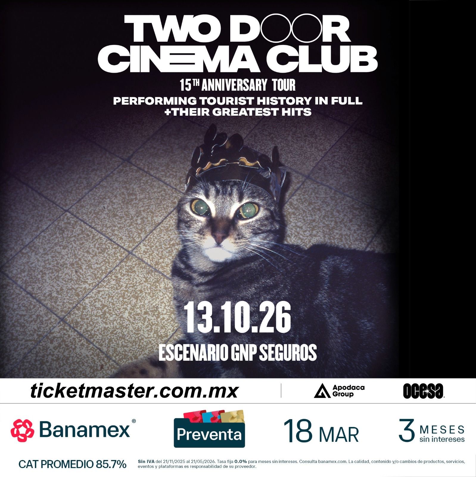 Los fans del indie rock ya tienen una cita marcada en el calendario. La aclamada banda Two Door Cinema Club llegará a Monterrey para ofrecer un concierto que promete ser una auténtica celebración del género.