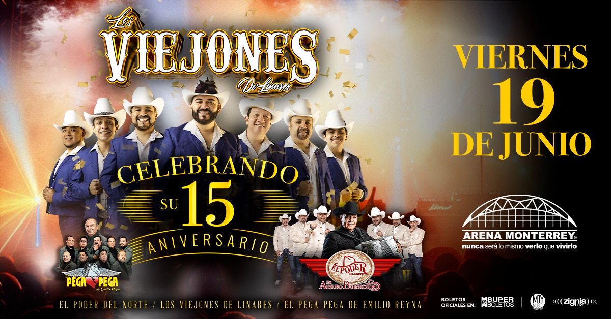 La música norteña está lista para hacer vibrar Monterrey con una celebración que promete quedar en la memoria de todos. Los Viejones de Linares festejan su 15 aniversario con un espectáculo especial que llegará a la Arena Monterrey el próximo 19 de junio a las 21:00 horas.