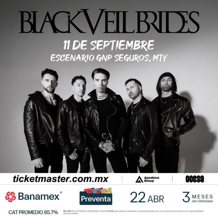 Monterrey está a punto de sumergirse en una tormenta de guitarras, estética oscura y emoción desbordada. Black Veil Brides anuncia su esperado regreso a la ciudad con un espectáculo que no viene a medias tintas: viene a sacudirlo todo.