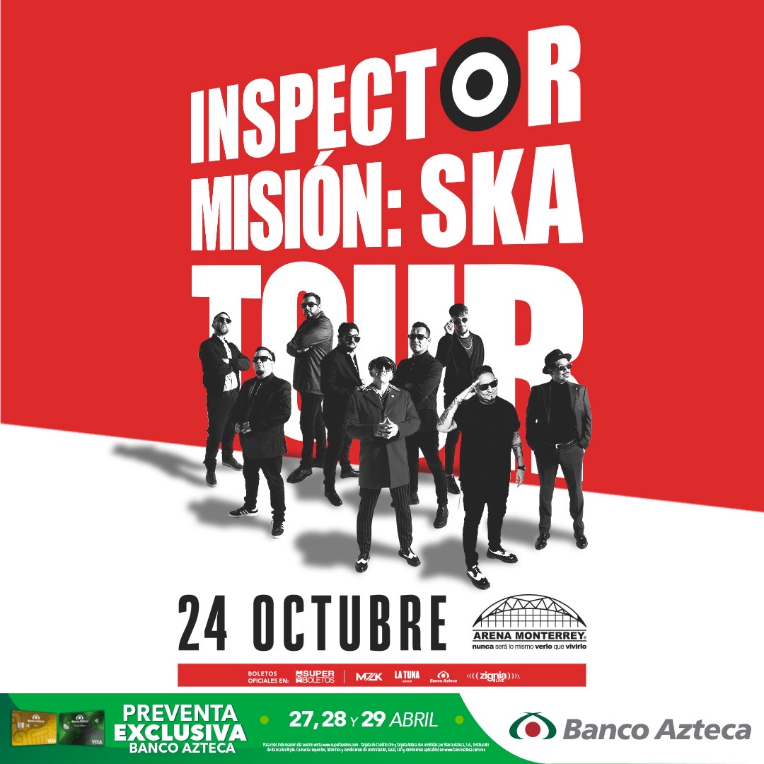 La icónica banda regiomontana Inspector está lista para hacer vibrar la ciudad con su gira “Misión: Ska Tour”, un espectáculo de gran formato que celebra tres décadas de música, historia y conexión con su público. La cita es el próximo 24 de octubre de 2026 a las 21:00 horas en la Arena Monterrey, uno de los recintos más importantes del país.